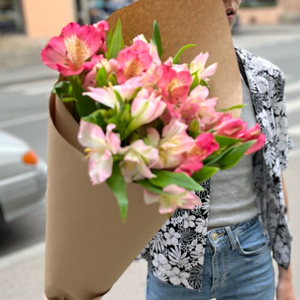 Альстромерия – 9 шт.Упаковка крафт – 1 шт.октрыточка с вашими пожеланиями – 1 шт.